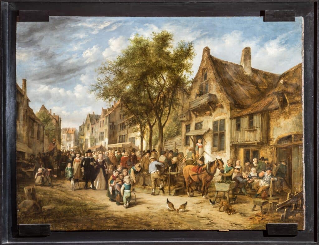 MNR 426 (Musées Nationaux récupération de biens spoliés) acheté à Paris et revendu à M. Bornheim pendant la guerre, le tableau est attribué au Louvre par l’office des biens privés en 1950 et déposé au musée de Bernay en 1955, qui n’en est que le détenteur provisoire. Pour plus d’information : Biens Musées Nationaux Récupération (MNR) (culture.gouv.fr)